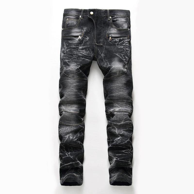Make your individuality more alluring by dressing in Slim Racer Biker Stretch Hip-Hop Jeans. This relaxed-fit solid-pattern denim is beautifully made to give you comfort and a stylish appearance all day long. These jeans are appropriate for wearing to social gatherings, meetings, and parties. These exquisite jeans are made from premium denim and come in 11 sizes and 3 fantastic colors, so you can pick your favorite.