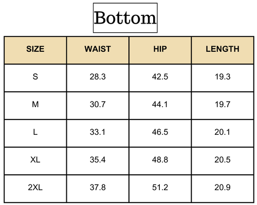Size Chart (inches):