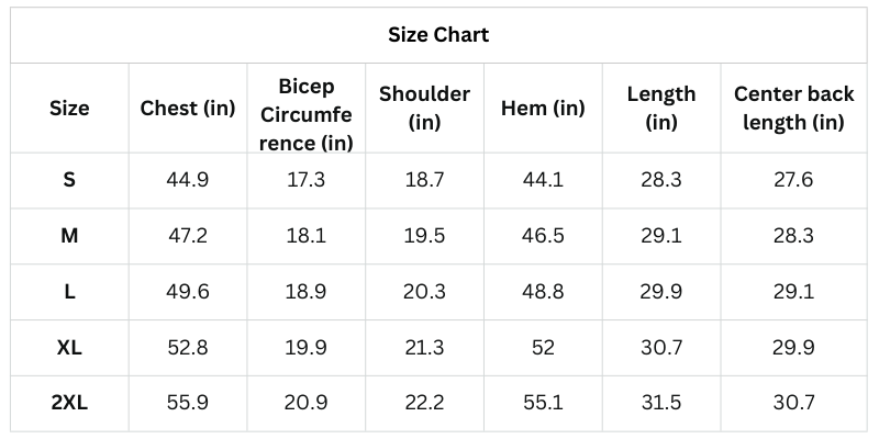 Size Chart(Inches):