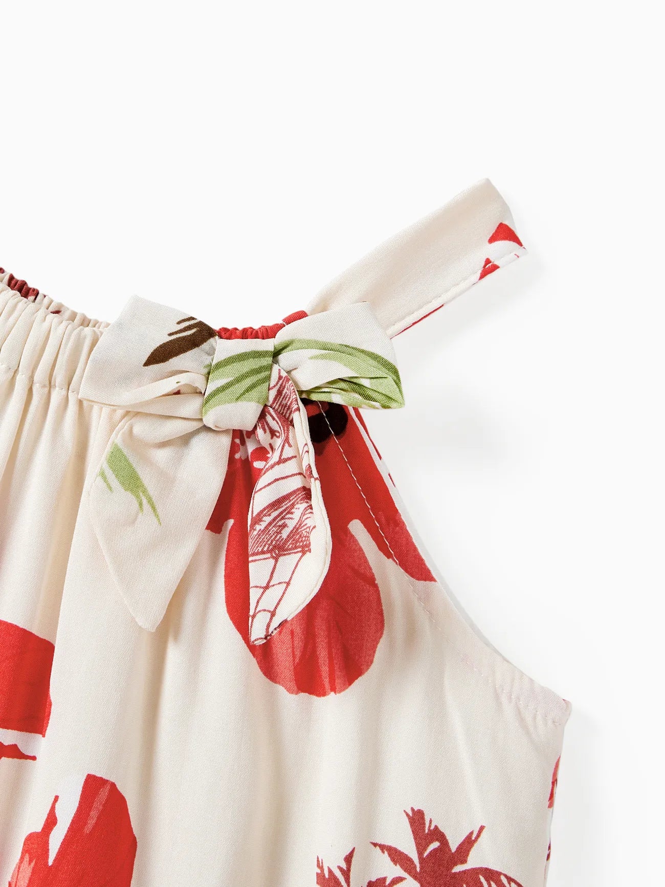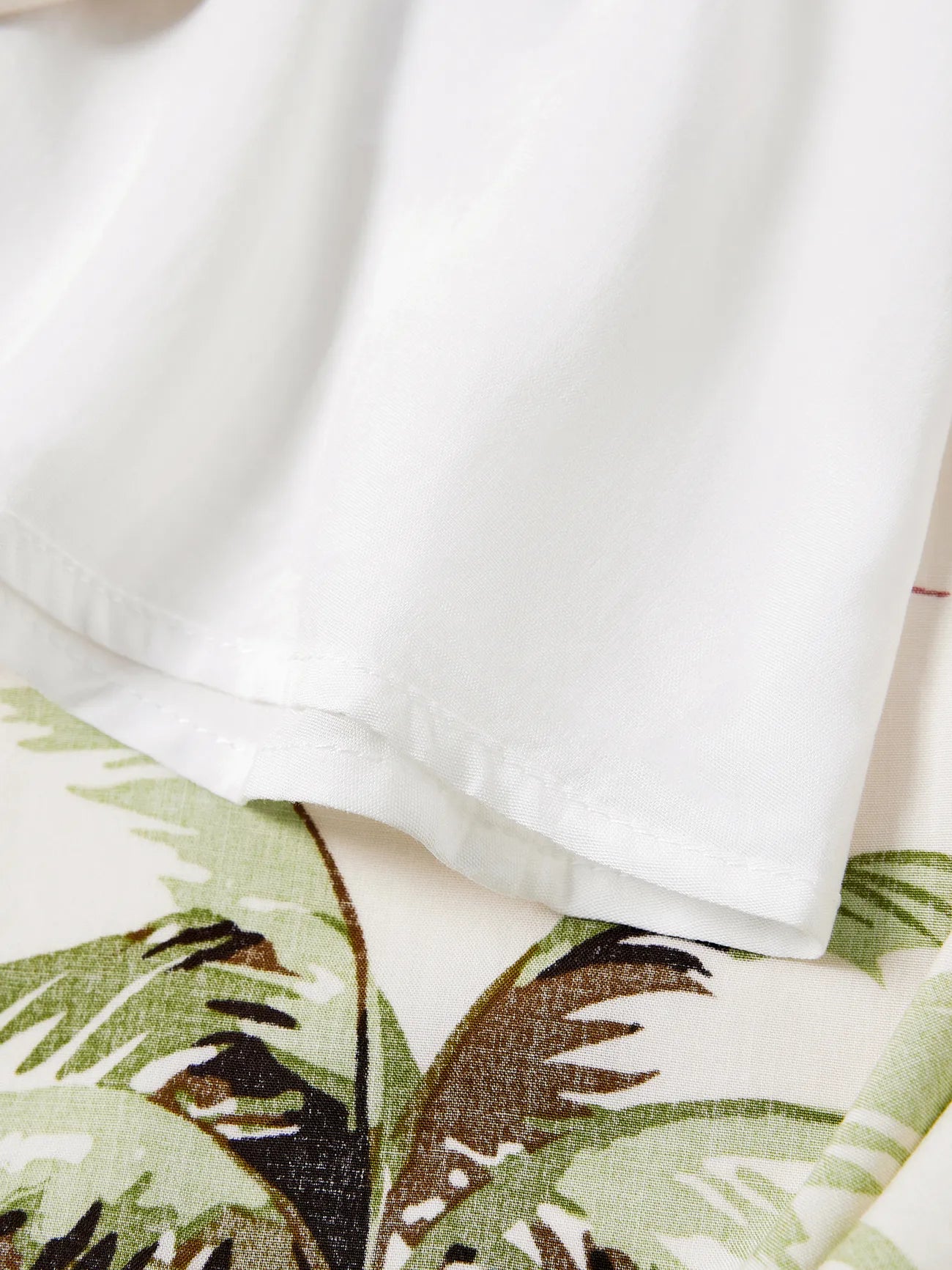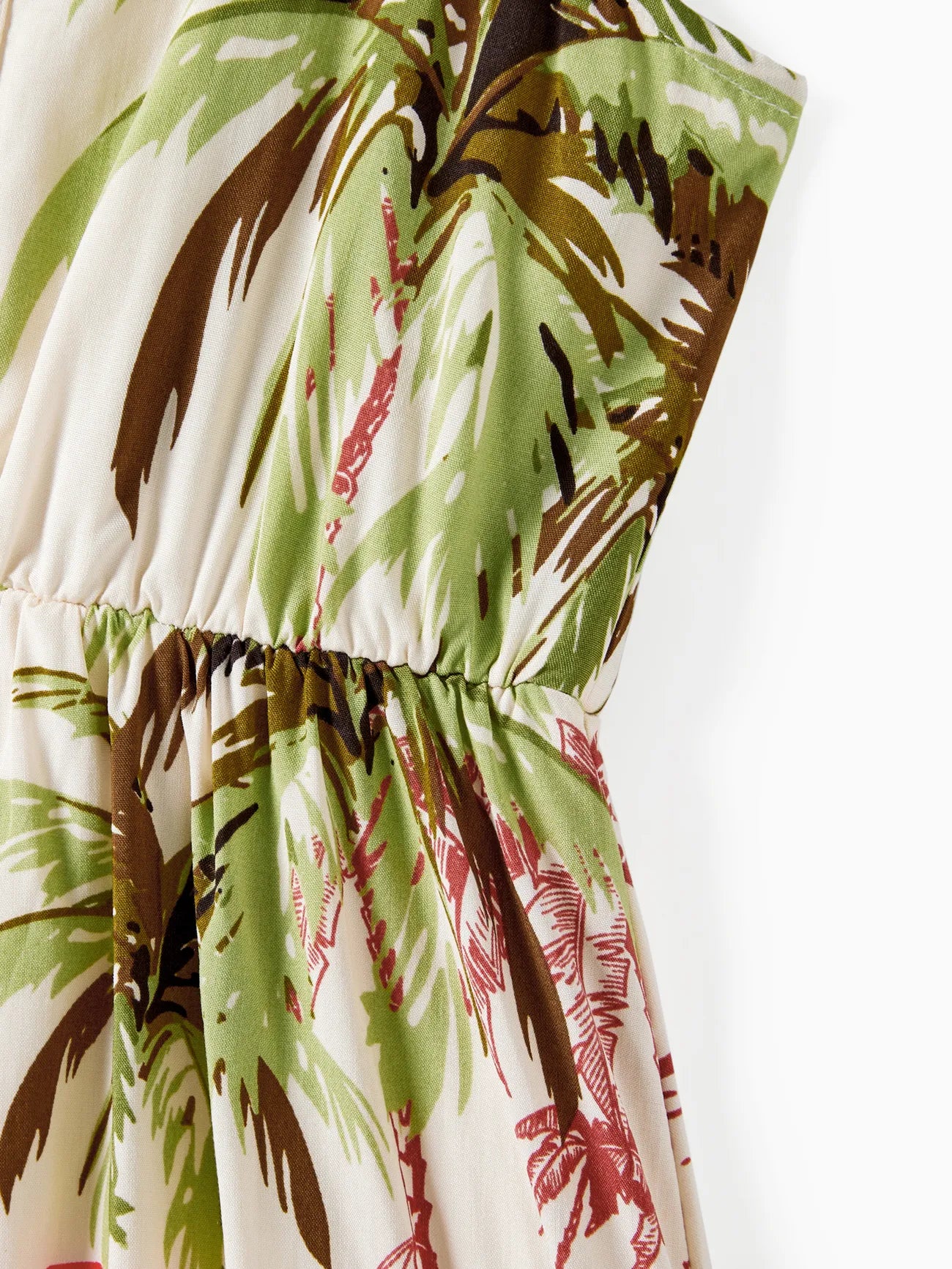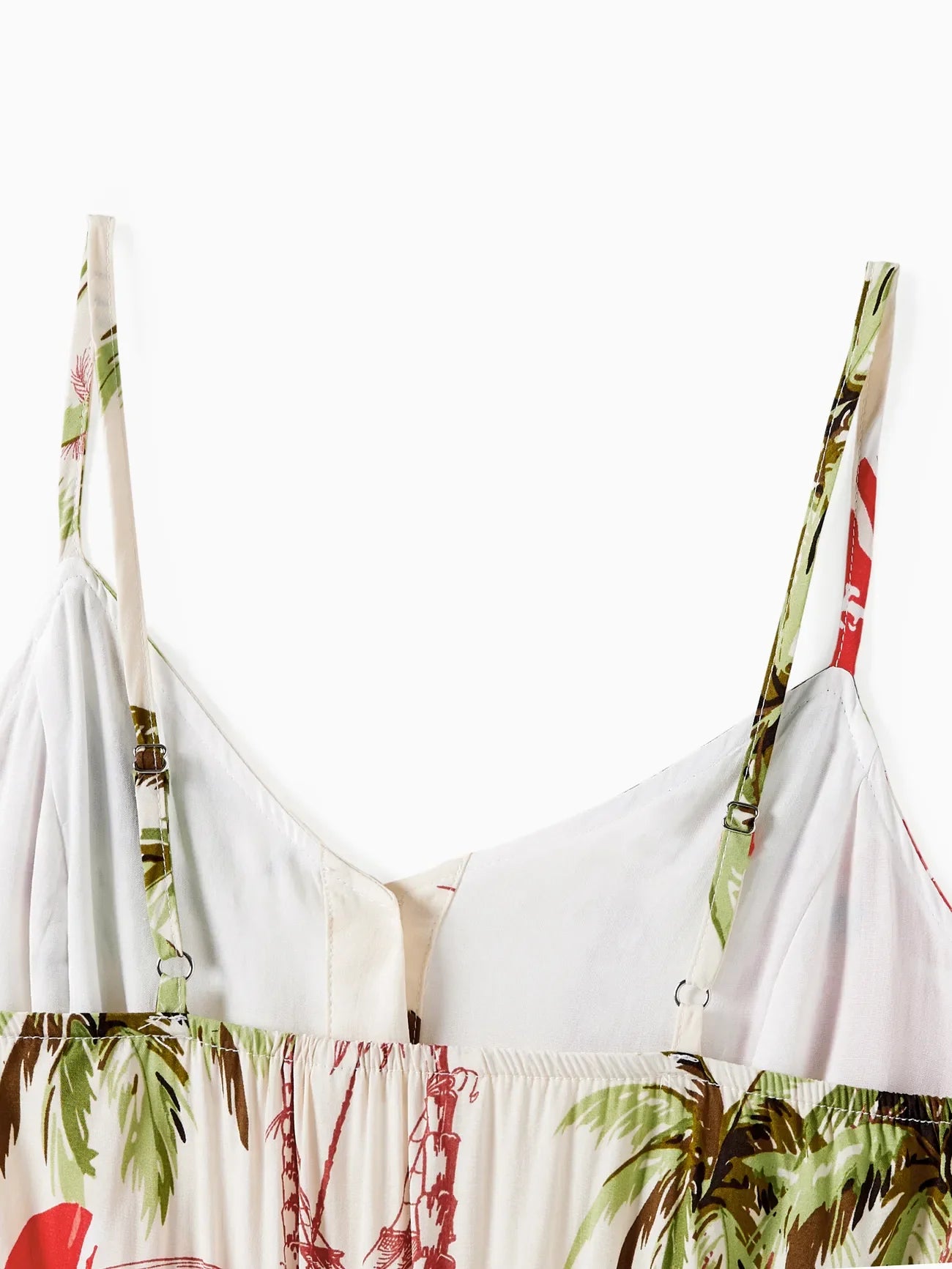 Design and Pattern: Each piece showcases a tropical print with palm trees and red hibiscus blooms on a light background, creating a comfortable, vacation-ready feel.