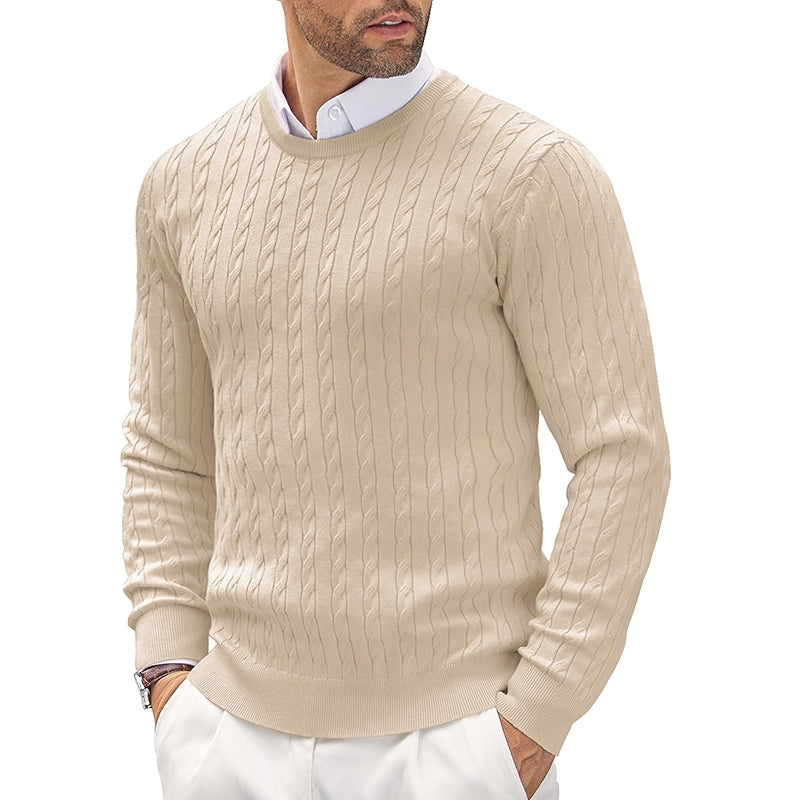 The detailed design includes intricate cable knitting that showcases craftsmanship and attention to detail. Made from durable materials, the pullover offers year-round usability, suitable for layering in cooler months or wearing alone during transitional seasons. The classic crew shape ensures versatility while allowing for easy pairing with different outfits, making it suitable for both casual outings and more refined gatherings.