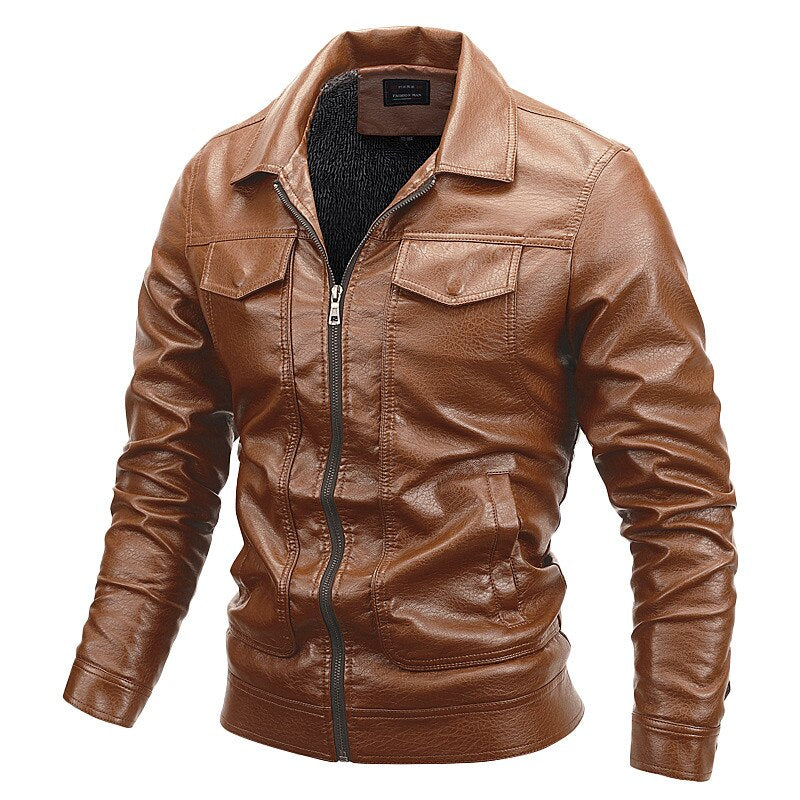 Winter Turn Down Collar Zipper Motorcycle Jacket is made of PU material and has a thickness of fleece and polyester lining. This jacket can be worn daily as it has full-length sleeves and twill fabric. It comes with a zipper so it can be easily worn and taken off also.