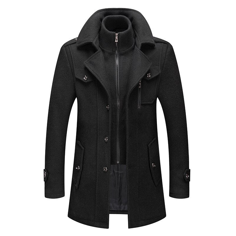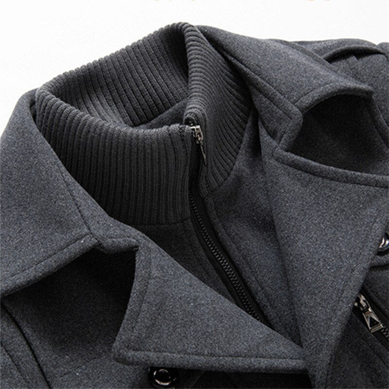Winter Warm Double Neck Trench Coat is designed to be particularly comfortable and durable, with a wool exterior and polyester lining. This versatile coat can be worn in either the workplace or out on casual evenings. It also features long sleeves and a turn-down collar.